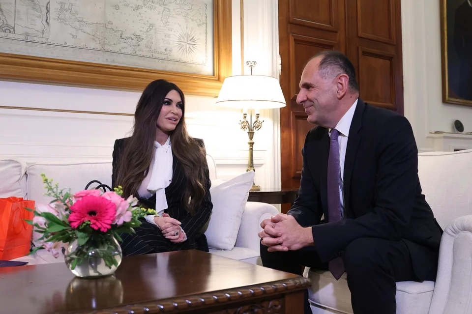 Η συνάντηση πραγματοποιήθηκε σε θετικό κλίμα, με την κ. Γκίλφοϊλ να εκφράζει πως αισθάνεται σαν στο σπίτι της στην Ελλάδα. Μαζί της μετέφερε και μια κόκκινη τσάντα με δώρο για τον Υπουργό Εξωτερικών.